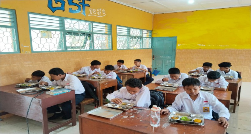 “Senang sekali rasanya, makanannya enak dan bikin kenyang. Jadi lebih semangat belajar,” ujar salah satu siswa kelas VIII.