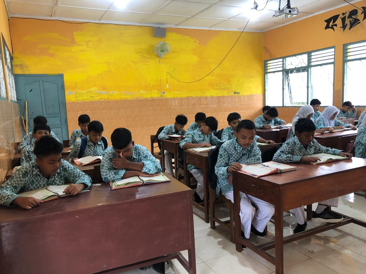 Tadarus Bersama: Setiap kelas didampingi wali kelas masing-masing melantunkan ayat suci Al-Qur'an secara tartil, menciptakan harmoni suara yang menyejukkan lingkungan sekolah.